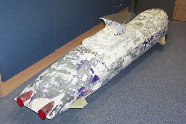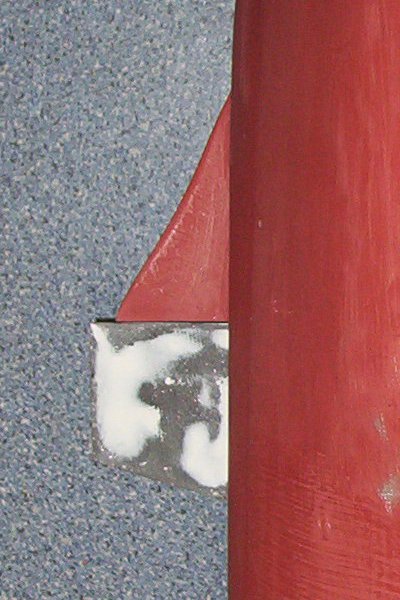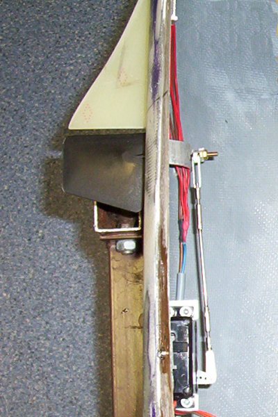 Wie sich herausstellte waren aber selbst diese Ruder bei weitem zu klein, so dass diese nochmals mit GFK/CFK vergrößert wurden. Jedes Ruder ist damit mittlerweile knapp 40 cm² groß. Damit die Servos wasserdicht sind, wurden die Öffnungen verklebt, zwischen Servohebel und Gehäuse eine Gummiedichtung eingefügt und das Servo verkehrt herum eingebaut. Falls doch etwas Wasser eindringen sollte, läuft lediglich der Raum mit dem (Plastik-)Getriebe voll, die Elektronik bleibt aber im trockenen.