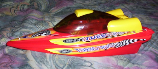 In einem ersten Test wurden dann Sendeplatine, Spannungsdoppler und Anschlüsse in den alten LIDL-Racer eingebaut, aber hier war das Problem, dass nur sehr wenig Restauftrieb vorhanden war. Ein kurzer Ruck genügte und das Boot mitsamt Elektronik ging baden. Also musste etwas größeres her.