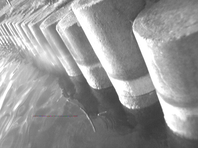 Und hier sind sie endlich. Das erste Bild zeigt eine Unterwasseraufnahme. Da der See momentan aber voll mit Schwebteilchen ist, sieht man nicht besonders viel. Wenn man von oben auf den See sieht, kann man aber auch nicht mehr als ein paar cm sehen. Das zweite Bild zeigt eine Überwasseraufnahme am Ufer. Die Sendeboje lag dabei im Wasser ca. 1m vom Ufer entfernt. Bei dem dritten Bild ist die Sendeboje ca 60m vom Ufer entfernt. Die Bilder selbst werden zwar schon gut, problematisch sind aber diese Halbbilder. Wenn man sich das Bild genauer ansieht, bemerkt man Schattenbilder, die von zu schnellen Kamerabewegungen kommen. Mal sehen wie sich dieses Problem lösen lässt.